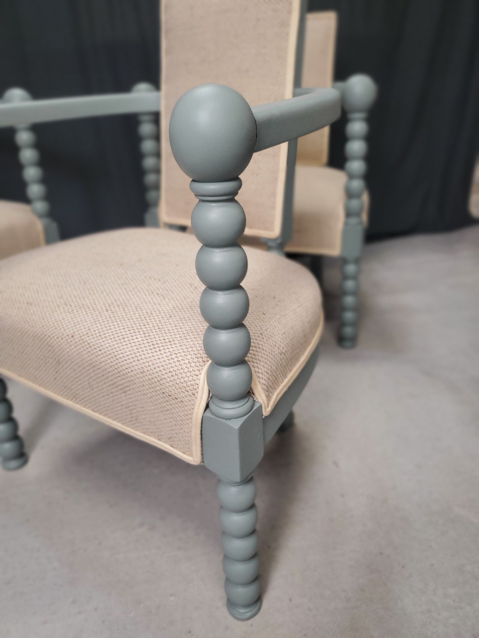 La finition est pensée pour évoluer : Avec le temps et l’usage, la peinture laissera délicatement transparaitre le bois de hêtre, révélant une patine vivante et pleine de caractère. Chaque fauteuil évoluera subtilement, gagnant en authenticité